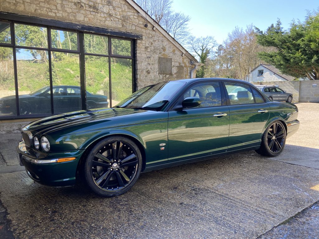 2003 S type R in Jaguar Racing Green (HGZ), stock (for now) other than rear silencers deleted.