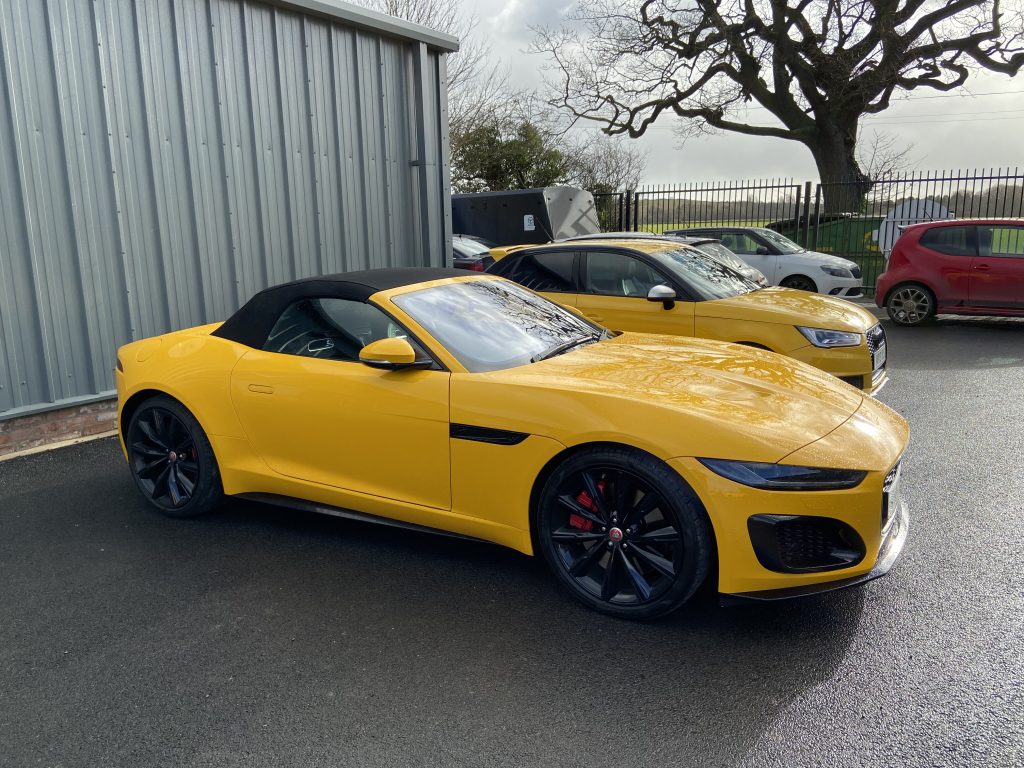 F-Type V8 R convertible in SVO Sorrento Yellow, with Black Pack & Gloss Black Alloys