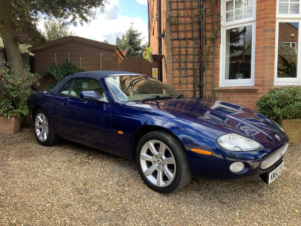 My 2000 XKR 4ltr convertible, finished in Pacific Blue with Ivory leather. Owned this car just over 20 years, dry stored all that time, never been wet except when it’s washed, how sad am I?😳